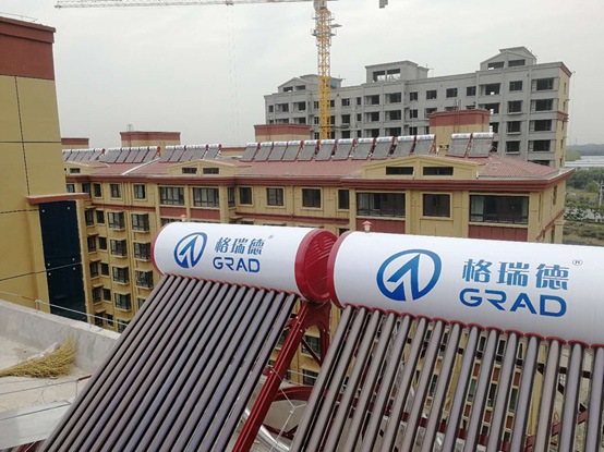 技术要求:该项目100L阳台壁挂式太阳能热水器与130L紧凑式太阳能热水器共计262台,数字化自控功能,电加热辅助的光电能源互补型供热,自动补水、恒温加热、冬天管路防冻,在阴、雨、雪天,仍能保障日常家庭日常洗浴热水需求,全年无间断热水。