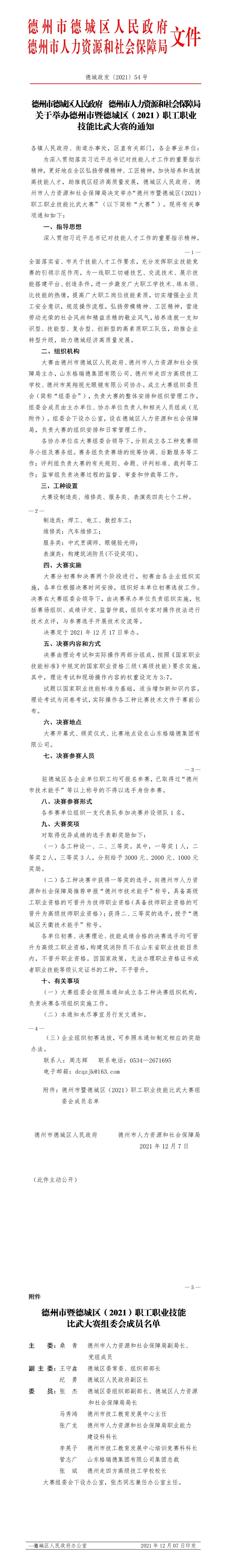 2021年12月17日德州市暨德城区(2021)职工职业技能比武大赛将在山东格瑞德集团有限公司复合材料产业园举办。发布此公告特号召各企业积极响应、报名参加。具体方案详见转发文件《德州市德城区人民政府德州市人力资源和社会保障局关于举办德州市暨德城区(2021)职工职业技能比武大赛的通知》(德城政发〔2021〕54号)