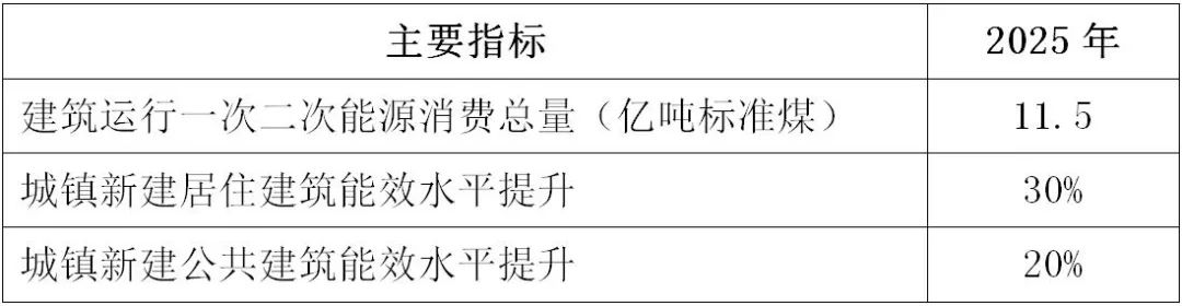 1.总体目标。到2025年,城镇新建建筑全面建成绿色建筑,建筑能源利用效率稳步提升,建筑用能结构逐步优化,建筑能耗和碳排放增长趋势得到有效控制,基本形成绿色、低碳、循环的建设发展方式,为城乡建设领域2030年前碳达峰奠定坚实基础。