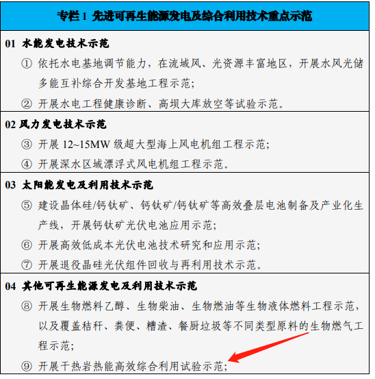 “十四五”时期将集中攻关,突破高温钻井装备仪器瓶颈,支撑水/干热型地热能资源开发;攻关中低温地热发电关键技术;开展高温含水层储能和中深层岩土储能关键技术研究,实现余热废热的地下储能。