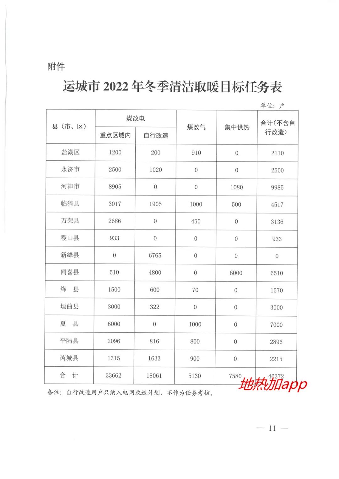 附件:运城市2022年冬季清洁取暖目标任务表