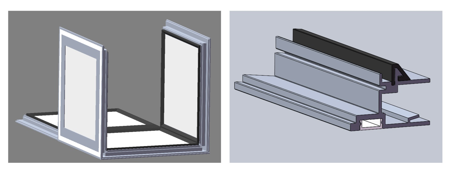 该型材结构的改进,在“小型空调箱专用型材”科研立项过程中发现,空调箱体由多块面板采用榫卯结构型材拼接而成,拼接时常常会出现搭接面不平整、缝隙大等问题,且加工设备投入大、库存占用高,箱体型材固定螺钉外漏,不美观。该研发团队通过搜集大量技术资料进行比较分析,最终设计出新型空调箱体型材结构。该结构采用一种型材即可完成框架的制作,降低生产成本,组装简单方便,能够有效降低机组漏风率,外观质量好,而且整体更加美观。