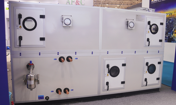 净化空气处理机组是由各种空气处理功能段组装而成的一种空气处理设备。适用于阻力大于100Pa的空调系统。机组空气处理功能段有空气混合、均流、过滤、冷却、一次和二次加热、去湿、加湿、送风机、回风机、喷水、消声、热回收等单元体。