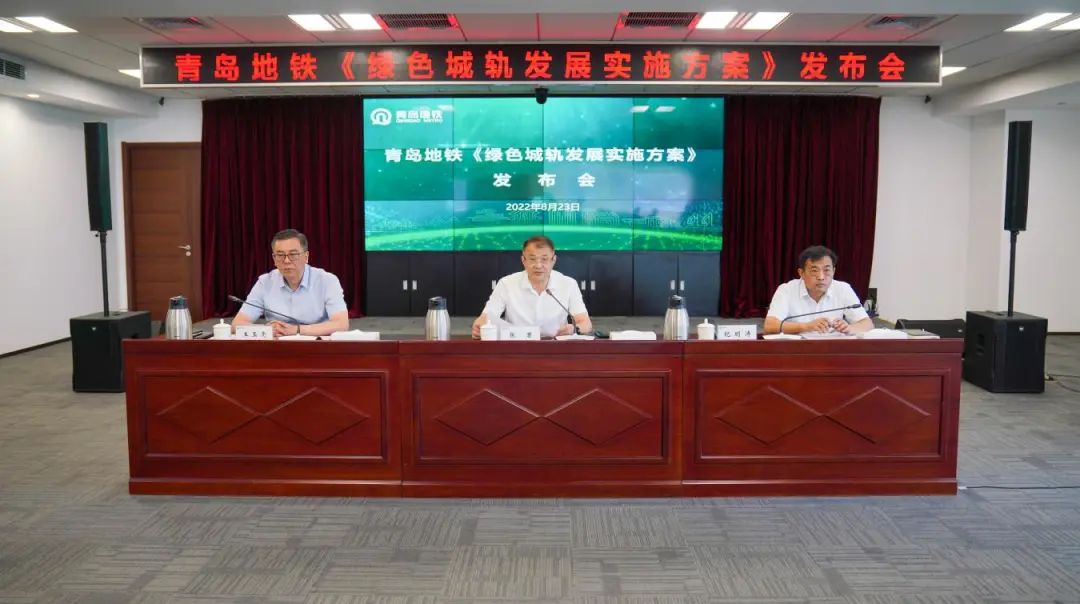日前,中国城市轨道交通协会发布了《中国城市轨道交通绿色城轨发展行动方案》,为了进一步落实国家“双碳”战略部署,响应中国城市轨道交通协会倡议,8月23日,青岛地铁集团在国内轨道城市中率先发布《绿色城轨发展实施方案》。青岛地铁集团党委书记、董事长张君出席《绿色城轨发展实施方案》发布会并讲话,青岛地铁集团党委副书记、总经理纪明涛介绍了《方案》相关内容,青岛地铁集团党委委员、总工程师迟建平,青岛地铁集团党委委员、副总经理王玉亮,青岛地铁集团总经理助理芦睿泉、刘纪俭,青岛地铁集团相关单位负责人,新华财经、中国改革报、大众日报、山东电视台、青岛日报、青岛电视台等十多家媒体参加了发布会。
