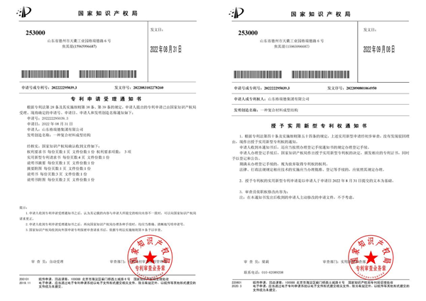 9月8日,经中国(德州)知识产权保护中心快速预审的实用新型专利“一种复合材料成型结构”获得国家知识产权局授权,该专利从正式申请到获得授权仅用时7个工作日。随后,集团发明专利“一种危险废物处置烟气净化新工艺路线及系统”同样顺利通过国家知识产权局专利局审批,正式获得发明专利证书。至此,格瑞德集团专利申请数量进入600大关。