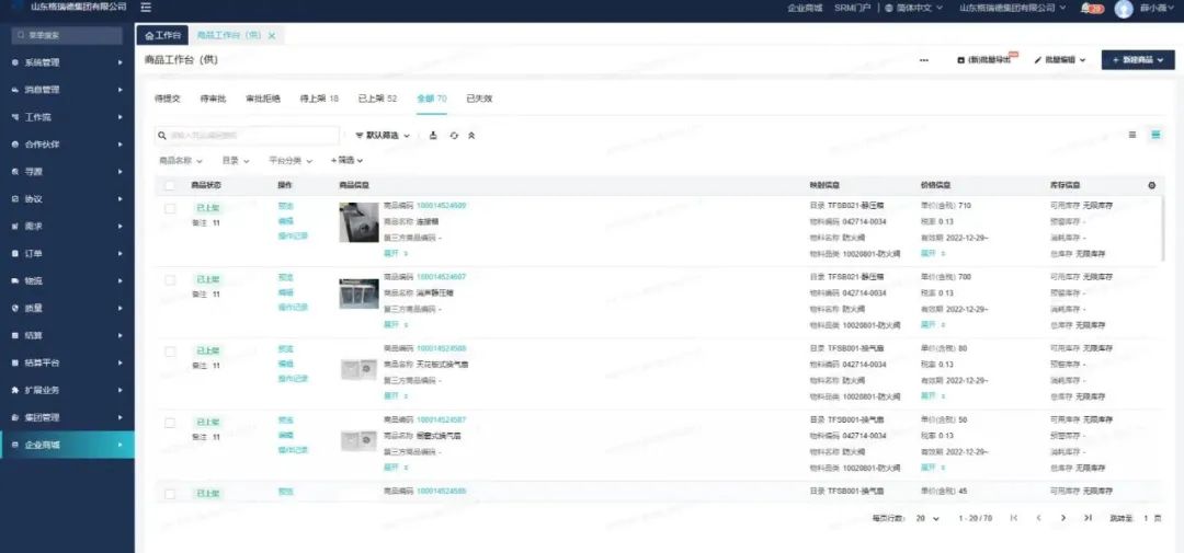 客户可以上传采购电子清单或自行录入多种商品自主匹配商城内产品,根据需求可以提交询价,由平台进行自动批量报价。