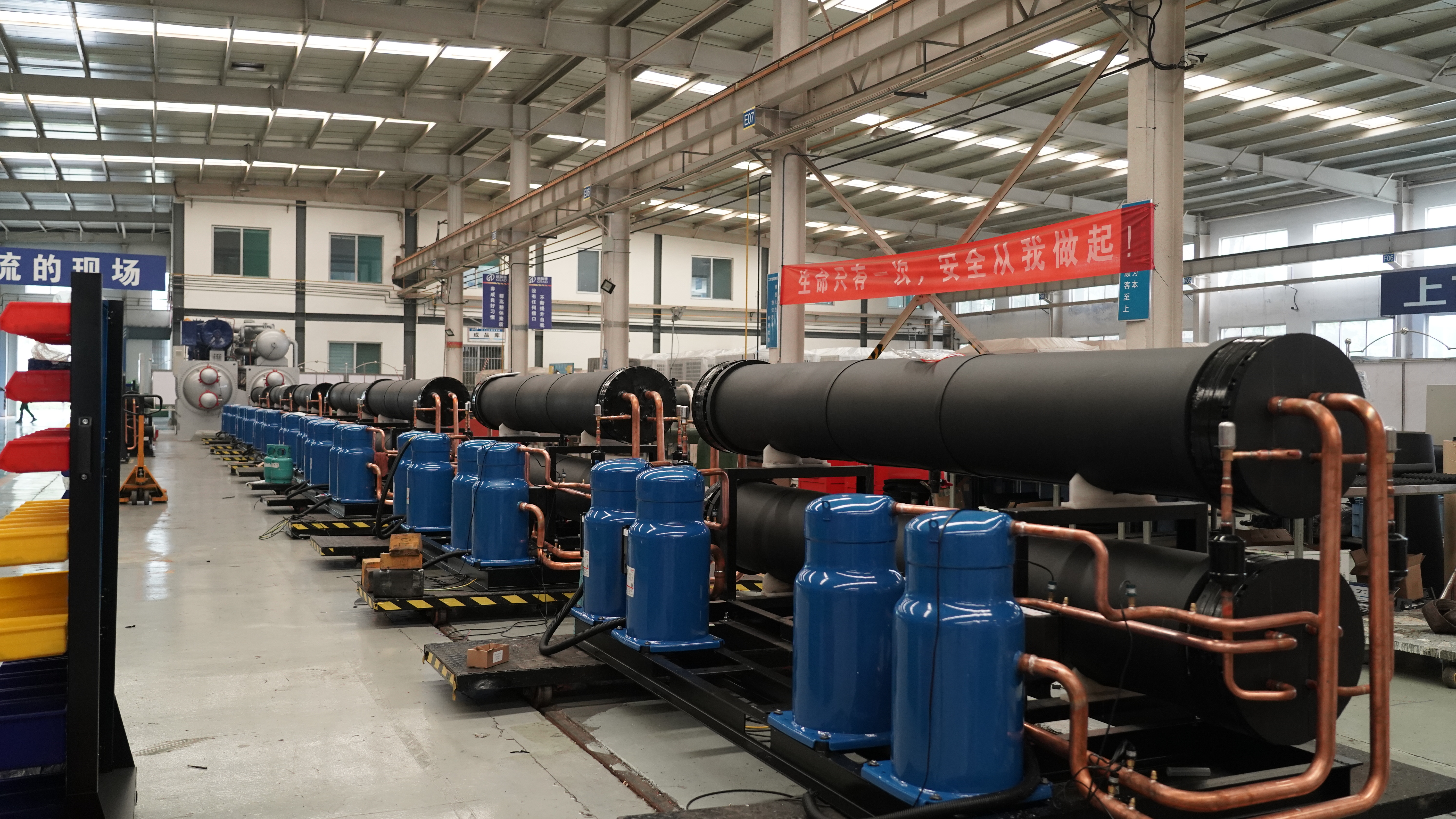 兴豪皮业工厂,格瑞德机组制取13-15℃工艺冷水,精准控温助力生产,老旧设备换新颜,生产效率与环保同行。