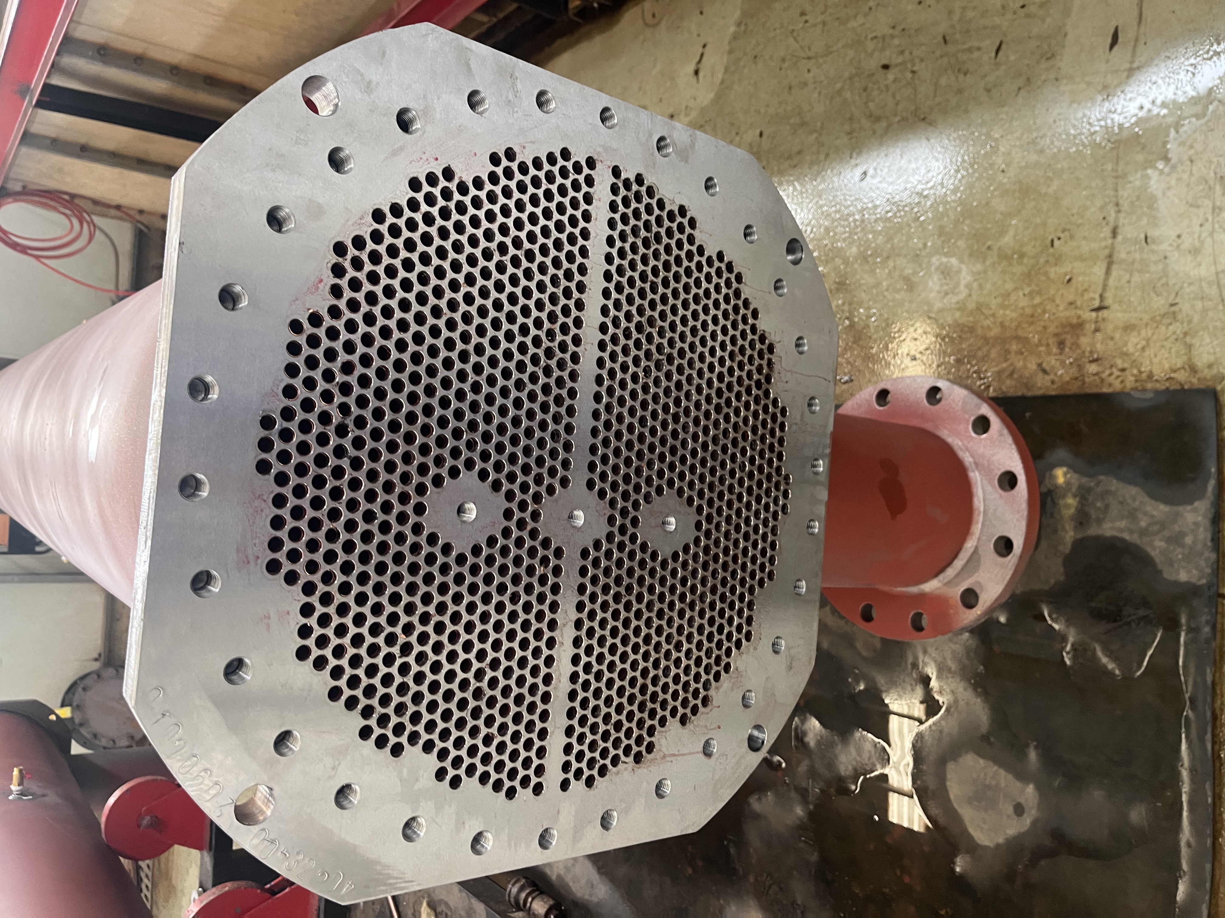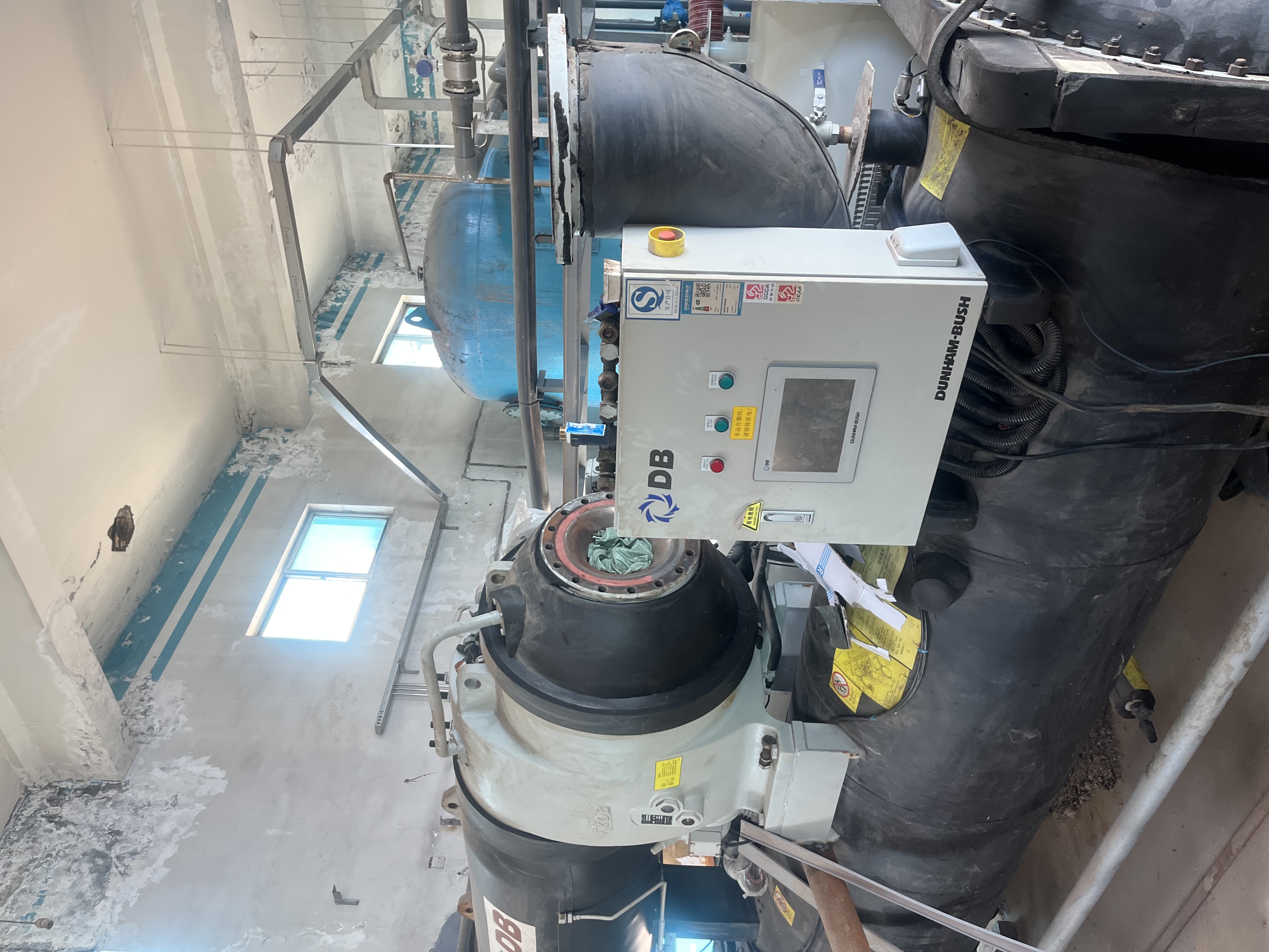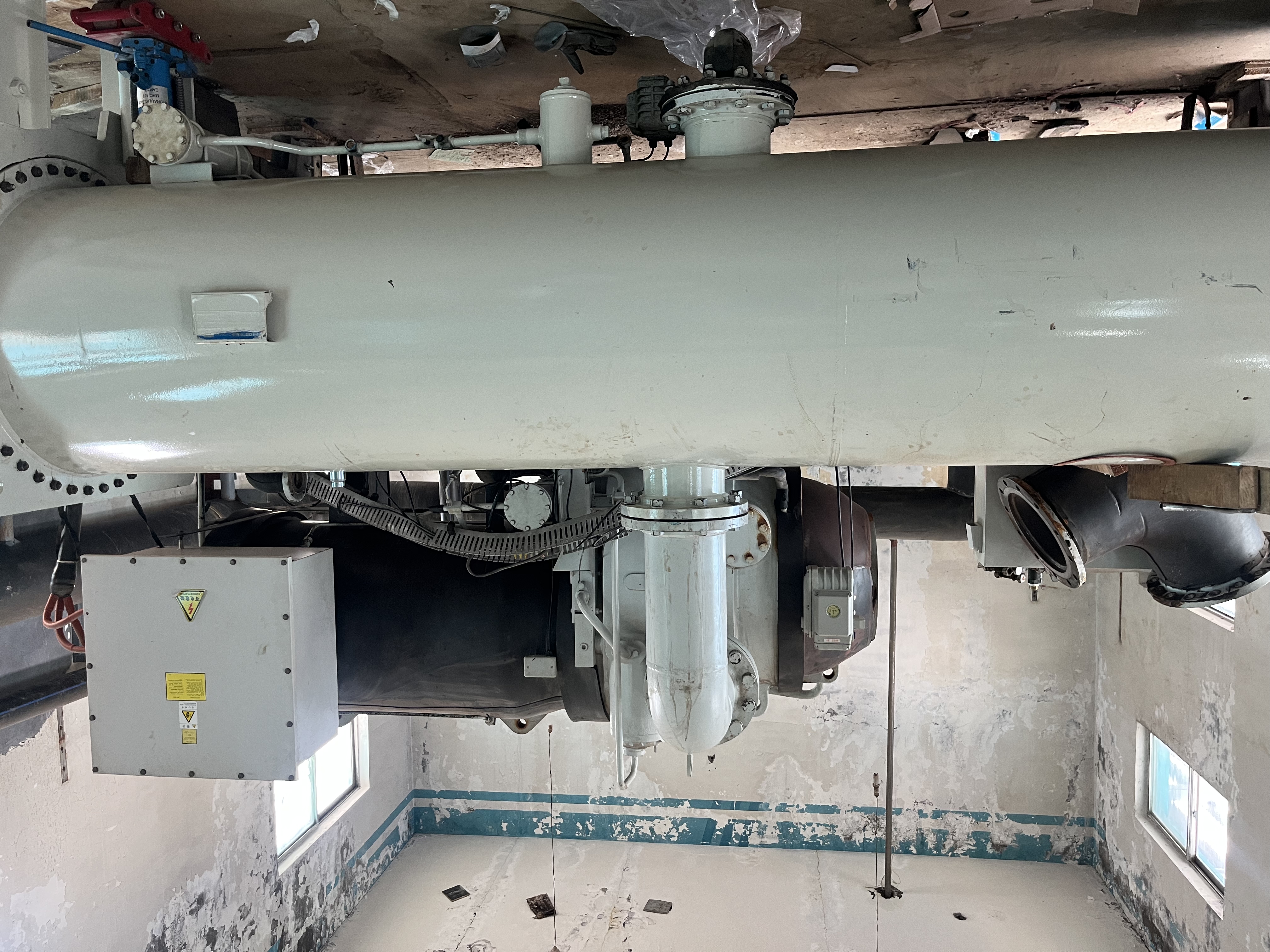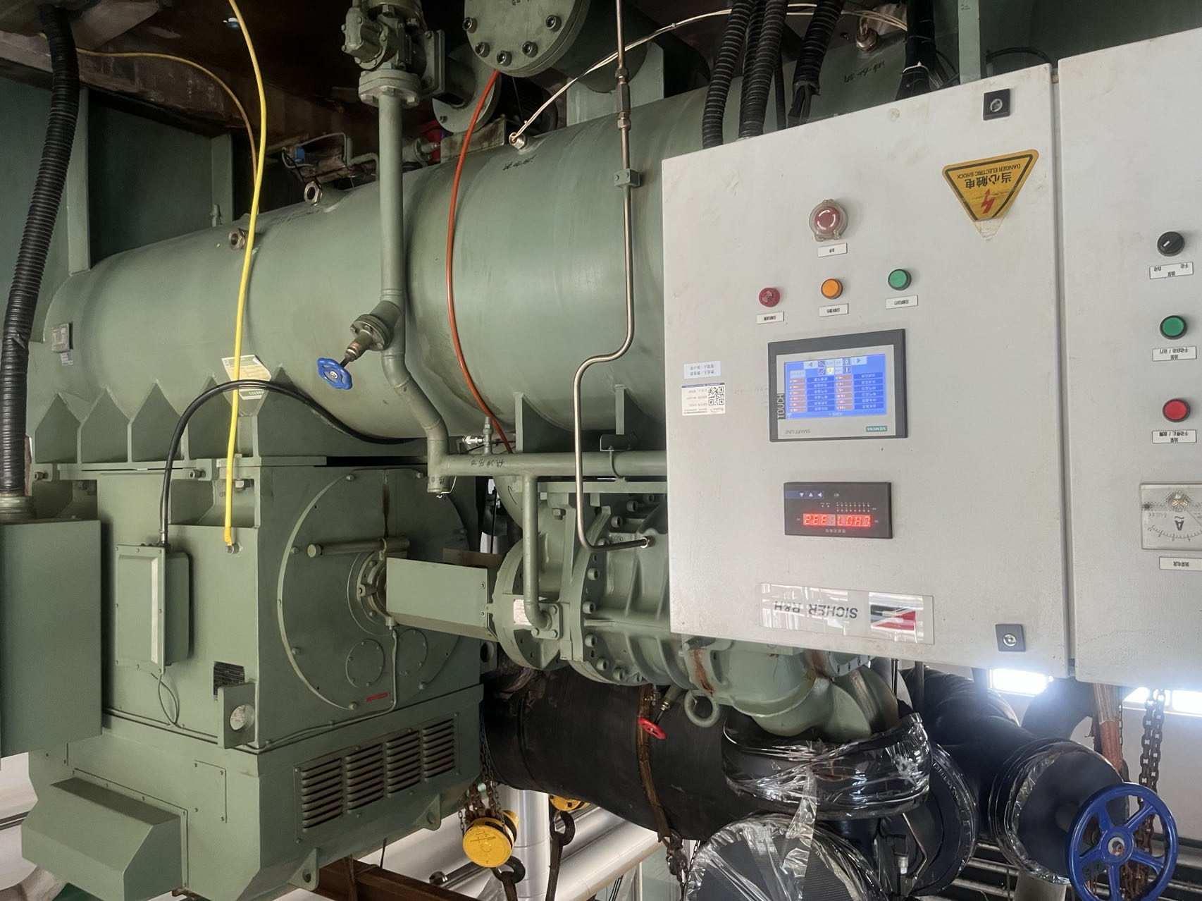 现场使用的是江苏希赫尔的双螺杆工业冷水机组(蒸发冷)机组,由于换热器损坏影响了正常运行。格瑞德公司为其定做了一台新的蒸发器,安装尺寸完全一致。新蒸发器的安装使得机组能够重新正常运行,保障了浙江利安隆新材料生产过程中的温度控制需求。