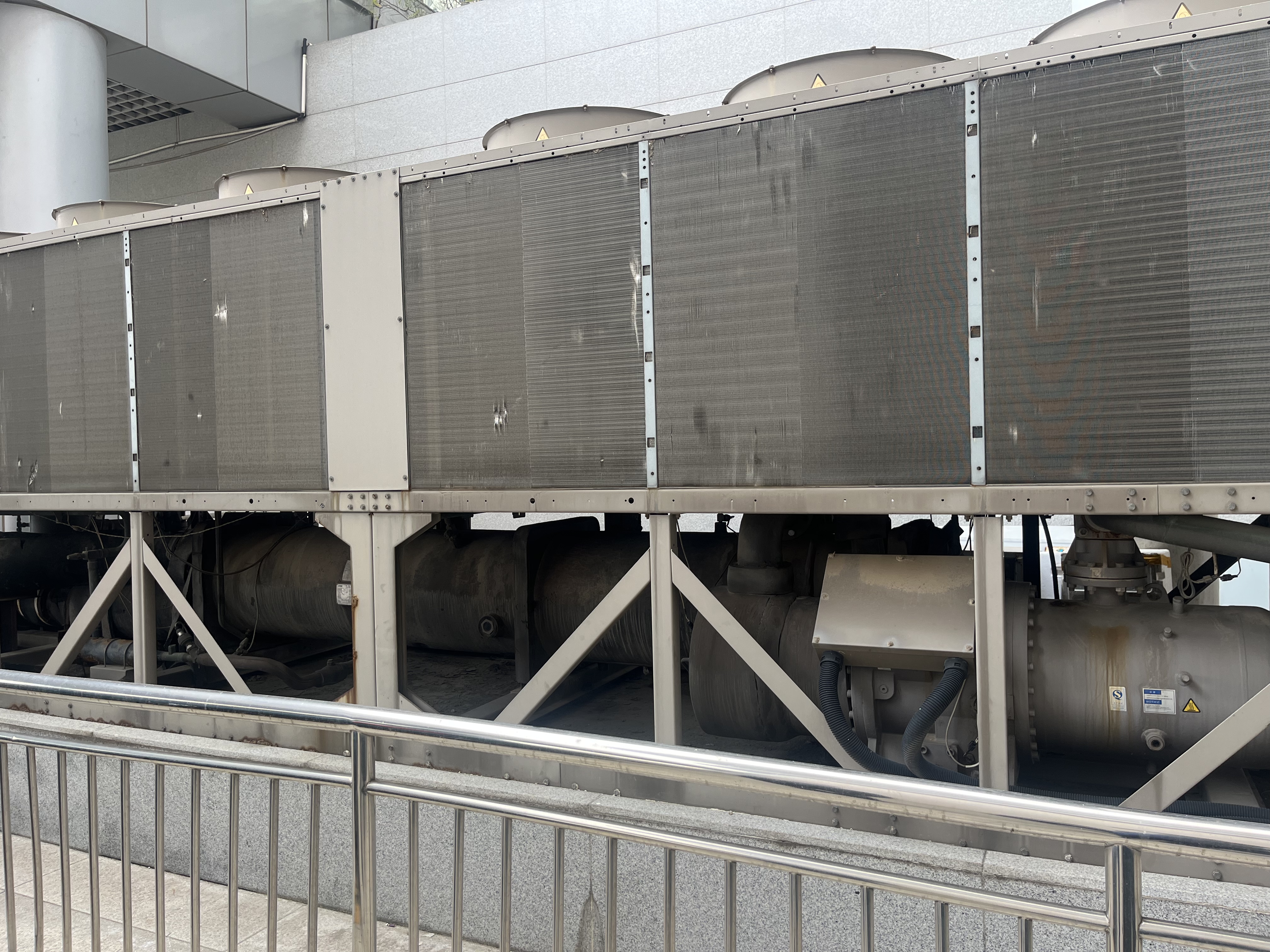 现场使用的是约克风冷螺杆机组,其中翅片换热器出现损坏。格瑞德公司的专业人员到现场进行精确测量,重新定制了 1:1 同等使用效果的换热器。新的换热器安装后,机组运行恢复正常,确保了济南西客站的空调系统能够稳定地为乘客和工作人员提供舒适的环境。