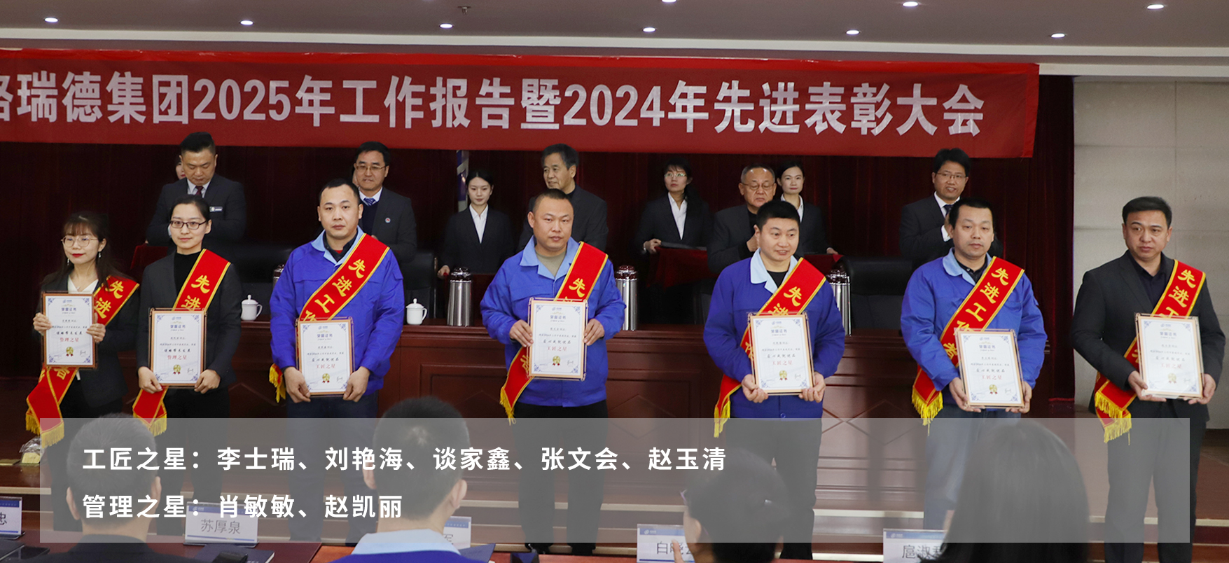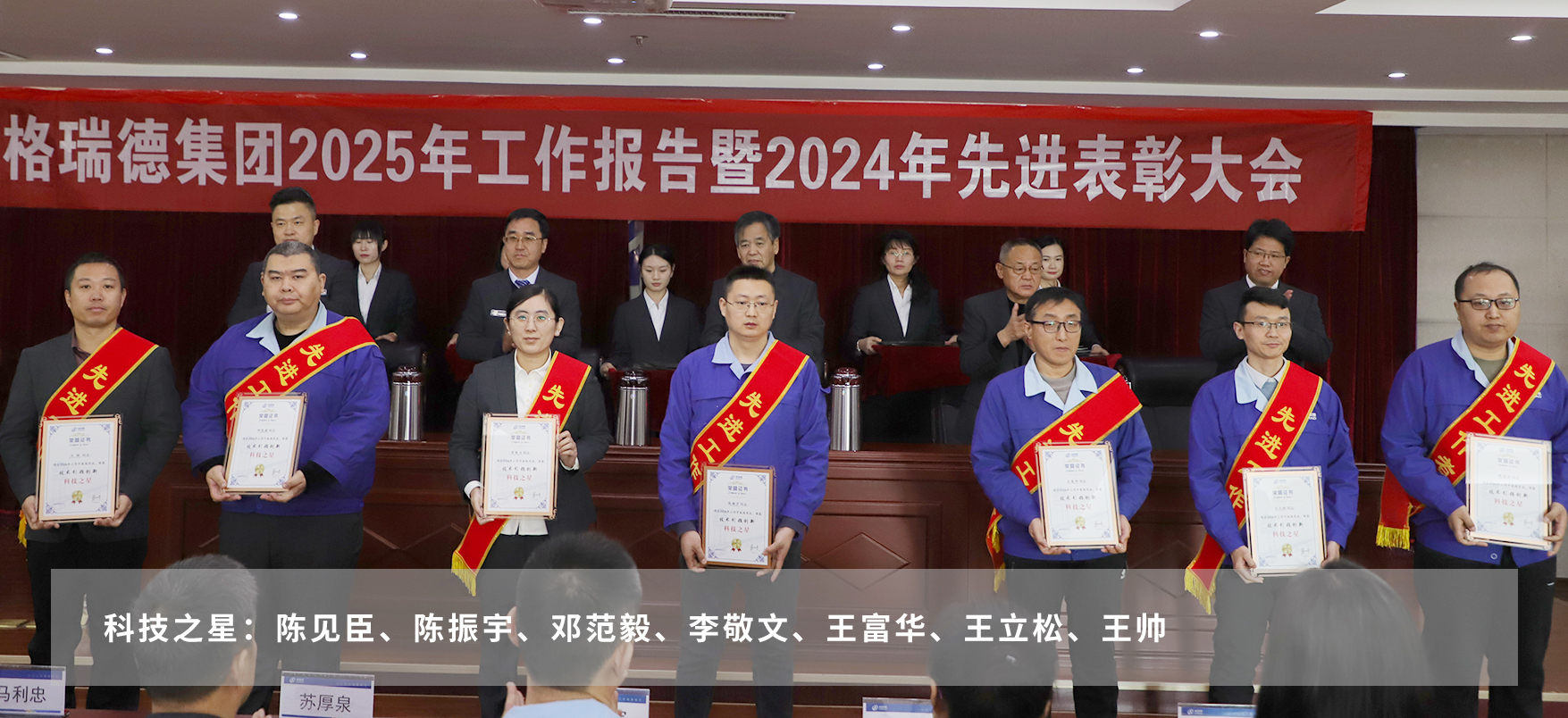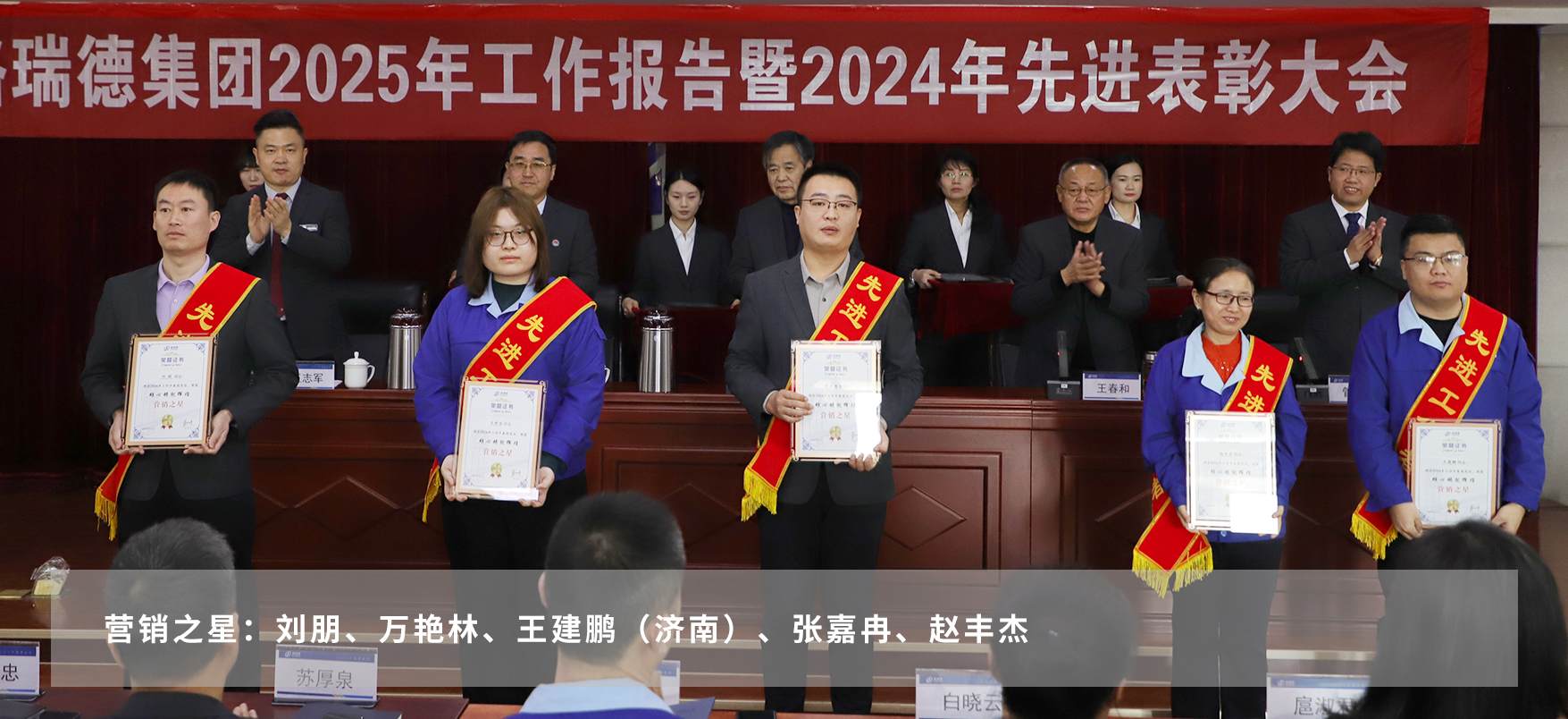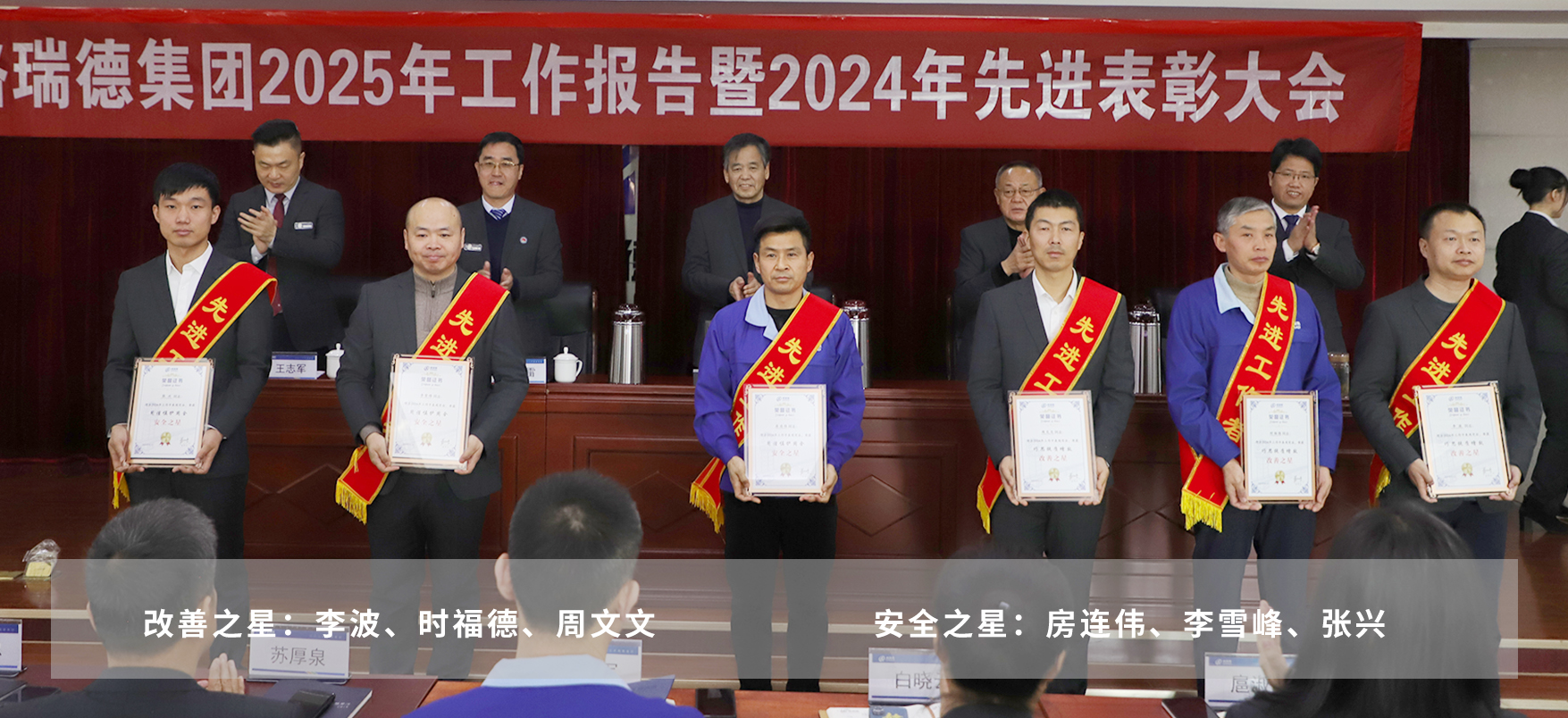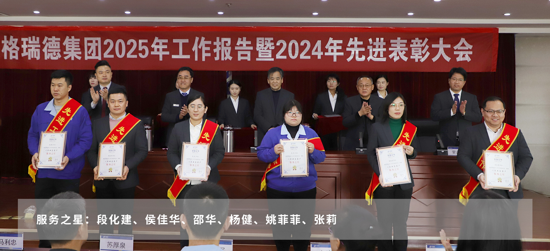 在热烈的掌声中,与会领导为获得表彰的2024年度先进团体和个人颁发荣誉证书。这不仅是对他们辛勤付出的肯定与赞誉,更是对全体员工的激励与鞭策。号召集团全体员工以先进为榜样,立足本职、尽责担当、敢于创新、勇于奉献。