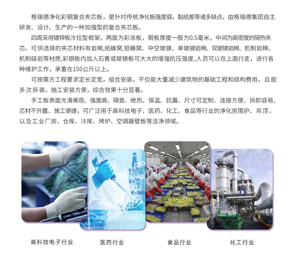 净化彩钢复合夹芯板