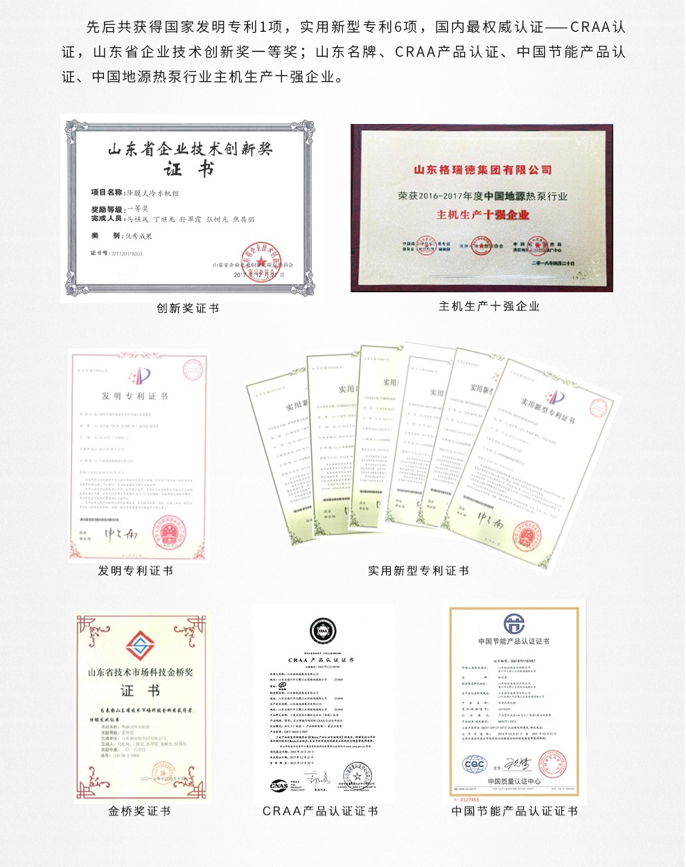 拥有国家机电设备安装壹级资质,环境保护工程二级资质,建筑装修装饰工程专业承包二级资质,钢结构工程三级资质,并获得了中国制冷空调设备维修安装资质,集团生产的空调产品获得国家制冷设备生产许可证,3C中国国家强制性产品认证、CRAA中国制冷空调行业权威性产品性能认证,压力容器国家特种设备设计、制造许可证,制冷主机、风机产品荣获中国节能产品认证。